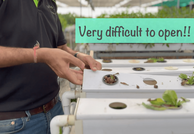 Cleaning and sterilising the entire NFT hydroponic system is a must after every harvest cycle because of the algae and different kinds of debris. When the channels are either not openable or very difficult to open, the entire cleaning process becomes too labour-intensive. This impacts the cost of the operations and delays the start of the next crop cycle.